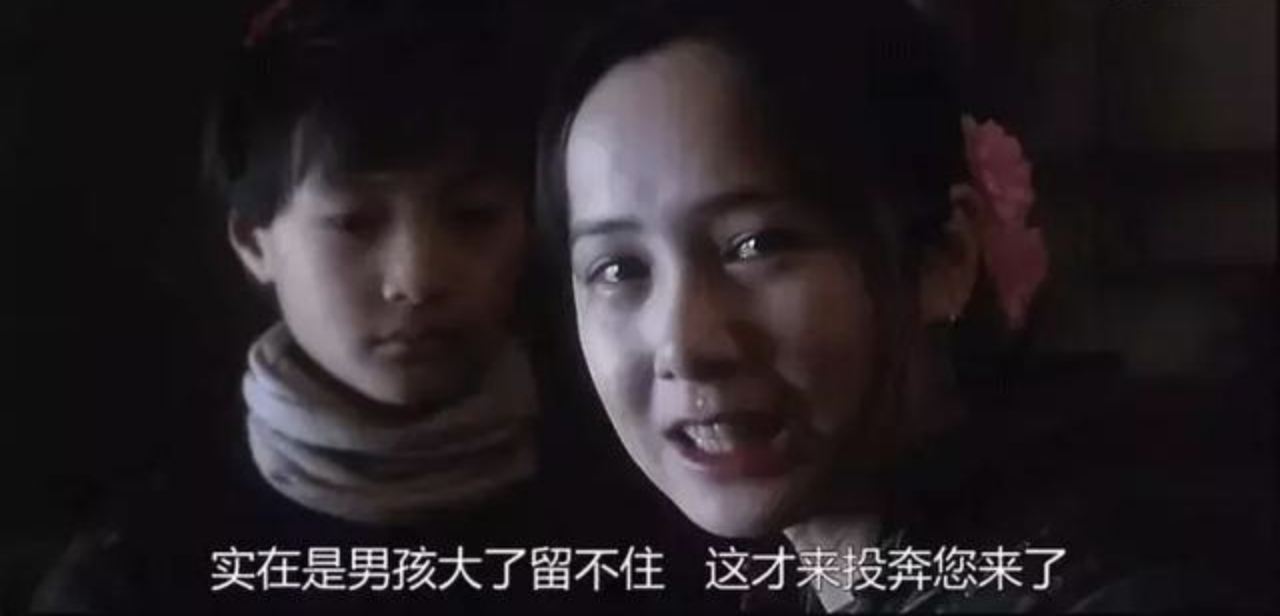 蒋雯丽饰演妓女艳红,携子投师。虽然只有几分钟的戏份,但她把忍气吞声又内含倔强的形象演得入木三分。那一斜睨、一下跪的香软眼神与身段,真是化尽了“风尘”二字。这段斜睨着眼神的表演,后来成为北电的经典教材。