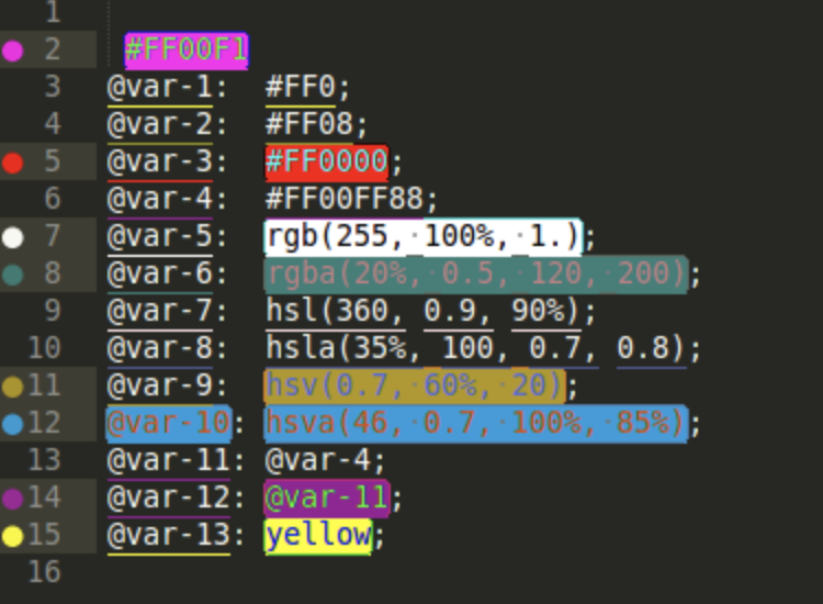 展示颜色代码的真正颜色。同时还提供一个颜色选择器可以方便地更改颜色。
